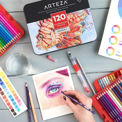 Arteza Professional Watercolor Pencils, Assorted Colors, Coloring Set For Adult Artists, Non-Toxic – 120 Pack