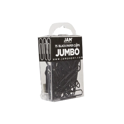 JAM Paper Black Jumbo Paper Clips are the best way to organize and color-code all of your papers for work and school. Forget those small-time, basic silver paperclips when you have JAM Paper Colored Jumbo Paper Clips! Not only are these brightly colored, they are a huge size. These jumbo paperclips measure 2 inches long, so they will clip a variety of papers together securely. These particular clips are black, so they are sure to make a statement. They are neutral enough to use for any occasion, but they are bold enough to catch eyes and be different than the standard silver color. These paper clips are made of smooth metal and are the highest quality, sturdiest clips out there, so they won’t be bending or breaking easily. Use them around the house, the office, or at school. These paperclips are sold in 2 packs of 75. Color: Black. Size: 2 Inches (Large/Jumbo). Quantity: 2/pack ( 75 per box ). Our premium paperclips are made from vinyl coated steel wire. These colorful paper clips are great for organizing papers and documents at home, school, or the office!. Sold as 2/Pack.