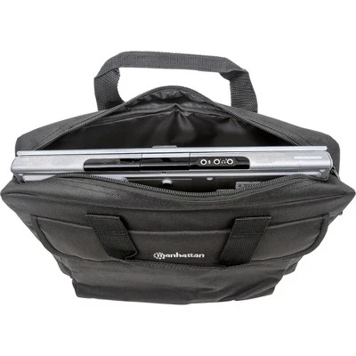 Sensible design with uncompromised computer protection. The Manhattan London Notebook Computer Briefcase is a practical solution with streamlined, traditional styling that easily travels and fits almost anywhere – under airline seats, into overhead bins and into larger luggage pieces. A single, wide deep front pocket keeps vital items, papers and accessories safe but within quick reach. Its secured flap with closure protects stowed contents. Dual strap handles with reinforced stitching and an adjustable, removable shoulder strap give mobile professionals multipurpose carrying options. Basic and Functional Storage Its interior with padded computer compartment accommodates most notebook computers with screens up to 15.6″. The top-load configuration enables quick packing and speedy airport inspections. There’s enough room in the large, scratch-free interior to keep files, papers and magazines smooth and flat. Beautifully Designed to Perform The exterior and interior a