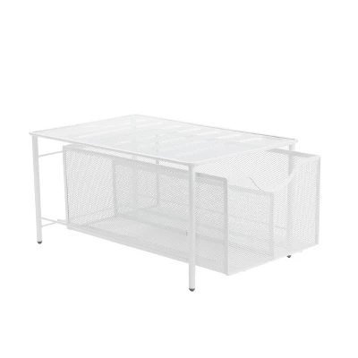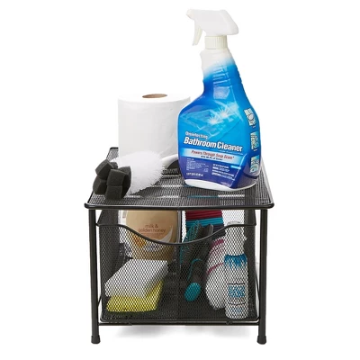 Tired of messy spaces? Store and organize anything, anywhere with this all-purpose storage solution.The MIND Reader Storage Basket and Organizer is a multi-purpose container with multiple compartments to keep your items organized. You can use it in the kitchen, bathroom, bedroom, and even the office.Use it as under the sink storage to keep cleaning items accessible and ready to use. You can also use it to keep countertops neat as a kitchen counter organizer or as a kitchen drawer organizer. Use it as a hot beverage caddy to organize teas or as a coffee station organizer to organize coffees, sugar packets and stirrers. This storage basket can also be used to organize snacks or fruit. This metal storage basket is perfect for the kitchen pantry. It can serve as a pantry cabinet organizer and extra pantry storage. No more rummaging for herbs or spices. You can use this as a sleek spice rack as well.Use it in the bathroom as bathroom storage or as a bathroom counter organizer to organize toiletries, cleaning products or hair accessories. Use it as a makeup caddy or makeup organizer for drawers to tidy up your lipstick collection, foundations and much more.Bring this organizer to the office to keep desks tidy. Organize pens, post-it notes, paper clips and much more. Place this item in the drawer for an instant drawer organizer. This wire basket for storage will not only keep things organized but save you tons of counter or drawer space.This storage basket is designed with a steel metal mesh to keep your items visible while being in a sleek container. This slide out cabinet organizer comes with sliding drawers for easy use and accessibility. This product is durable and built to last. At about two pounds, this basket is lightweight and portable. It’s also designed with rubber grips to keep it in place wherever you decide to use it.Stay organized with the MIND READER Storage Basket and Organizer. Get one or more to keep your home or office tidy!