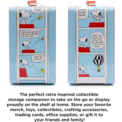 - RAISED EMBOSSED ART: The perfect Peanuts Snoopy collectible storage companion to take on the go or display proudly on the shelf at home.