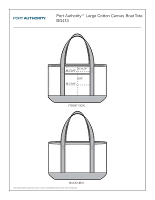 Perfect for the beach shopping and events these durable totes have open tops contrast handles and contrast bottoms for classic good looks. 15.5-ounce 100% cotton canvas body; 11-ounce 100% cotton canvas handle trim and bottom Sturdy reinforced webbing handles Exterior front pocket for easy decoration access Interior hanging pocket with hook and loop closure to secure valuables Dimensions: 16.5 h x 14 w x 7.5 d; Approx. 1 732 cubic inchesNote: Bags not intended for use by children 12 and under. Includes a California Prop 65 and social responsibility hangtag.