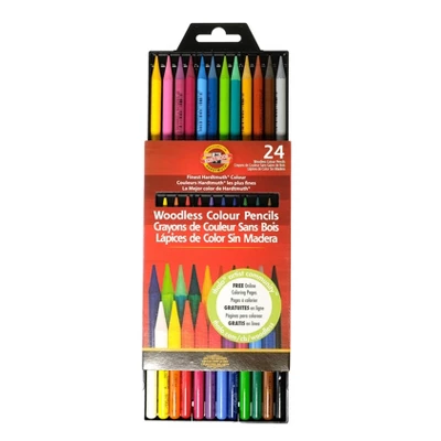 Progresso Woodless Colour Pencils by Koh-I-Noor put the color in the pencil and leave the wood on the tree. High-density, lacquer-coated Hardtmuth color pencils possess a smooth feel and excellent laydown properties loved by professional artists. These woodless pencils sharpen with a standard sharpener and utilize the entire lead. Progresso pencils outlast standard wood-cased pencils and maintain excellent light permanency ensuring a vibrant look that lasts. Progresso Woodless Colour Pencil Set of 24 creates work that is also water-resistant and non-toxic.