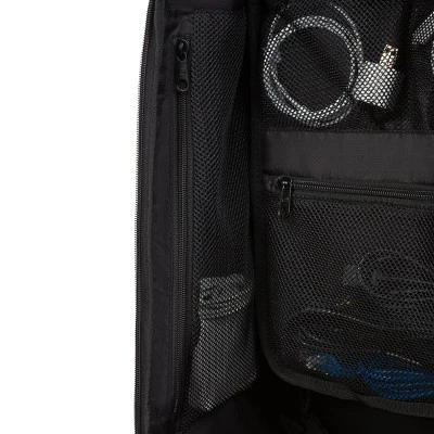 Equipped with fully padded, tuck-away ergonomically contoured shoulder straps with a built-in sternum strap, this pack also features a padded top and side handle, multiple internal and external storage pockets, a fully padded laptop compartment, a removable laundry/shoe bag, a stand-alone electronics accessories carrier, a packing cube, side storage and water bottle pockets, an integrated add-a-bag trolley strap system, side compression straps to help keep everything in its place, as well as front and rear reflective accents for added safety.