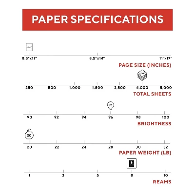 - Paper weight: 20 lbs. 500 sheets per ream, 8 reams per carton, 4000 sheets total. Designed for laser and inkjet printers.