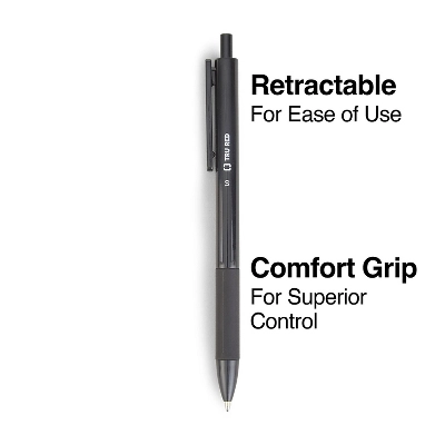 Write meeting notes and ideas with this 60-pack of TRU RED retractable ballpoint pens. Sign business documents with these retractable ballpoint pens. The rubberized grip lets you write comfortably, while the retractable design eliminates stray marks in bags and pockets. Featuring a 1.0 mm tip and low-viscosity ink, these black, blue and red-colored pens deliver smooth writing on paper. These TRU RED retractable ballpoint pens have clips for easy attachment to notebooks and pockets. Ballpoint stick pens for clean, consistent writing. Low-viscosity blue, black, and red inks for smoother writing experience. 1.0mm medium point spreads ink perfectly. Features barrels made of ABS plastic in assorted colors: blue, black, and red. Rubberized grip ensures added comfort. Convenient pocket clip allows you to attach the pen to notebooks, pockets, and more. Sold as 60/Box.