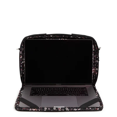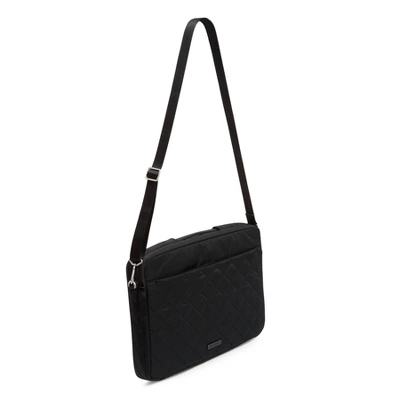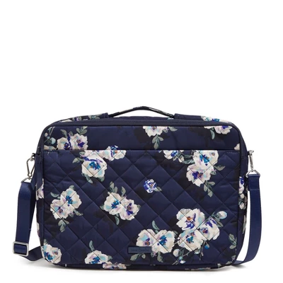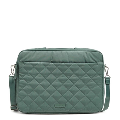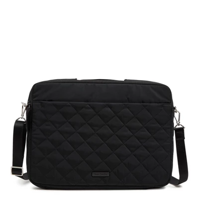 Whether it’s for work or for fun, your laptop will look stylish in this pretty protector. Crossbody strap keeps your hands free and the padded laptop pocket protects your tech. Details: Made from quilted, sleek, water-repellent polyester. Exterior features a front slip pocket. Two zip compartments. Front compartment: a mesh slip pocket, two pen slip pockets and two slip pockets. Back compartment: Padded laptop compartment with two elastic loops. Retractable handle. Zip closures. Care Tips: Spot clean with mild detergent and a soft, damp cloth, rinse thoroughly; lay flat to dry