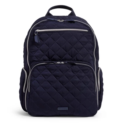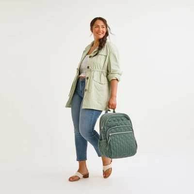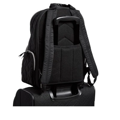 We’ve packed so much function into this backpack that you’ll wonder what you ever did without it! Details: Made from quilted, sleek, water-repellent polyester. Padded shoulder straps are shaped for optimum comfort. Both back panel and trolley sleeve are padded for comfort and covered in a mesh material to keep you cool. Exterior features front curved zip pocket contains two pen slips, one slip pocket, one mesh slip pocket, one zip pocket and a dog clip for keys. Front flat zip pocket and two side zip pockets. Hidden cell phone slip pocket on right side behind zip pocket. Inside main compartment: large gusseted pocket, two mesh slip pockets, one zip pocket and one water bottle pocket. Laptop compartment. Document slip pocket. Zip closures. Accommodates up to a 15″ laptop. Capacity 22 L. Care Tips: Spot clean with mild detergent and a soft, damp cloth, rinse thoroughly; lay flat to dry