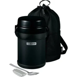 Zojirushi Mr. Bento stainless lunch jar comes with 4 microwaveable plastic inner bowls that fit inside a stainless-steel vacuum insulated outer container. The inner containers allow you to compartmentalize your food and bring an entire meal, like a pasta dish, soup, salad, and cookies in each separate bowl. The main and soup bowls stay hot or cold, and the two side bowls stay at room temperature, divided from the main bowl by an insulating inner lid. All lunch jars feature Zojirushi’s high-tech vacuum insulation provides superior heat retention to keep contents hot or cold for hours. Inner bowls are microwaveable (except inner lids) so meals can be packed the night before, and then quickly reheated the next morning. A silicone gasket and tight-fitting lid on the soup bowl help to minimize leaks. The pressure release valve can be utilized to release built-up pressure if the soup bowl lid becomes difficult to open. The outer container has a nonstick coated interior and is washable (do not soak in water). Also includes a forked spoon with cover and easy to carry bag.